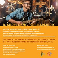 Katholisches Limburg D-Popularmusik Ausbildungskurs Bistümer Limburg und Mainz D-Popularmusik Neuer Ausbildungsjahrgang 2026/27 Spielst du Gitarre oder Klavier? Bist du mindestens 15 Jahre alt? Möchte