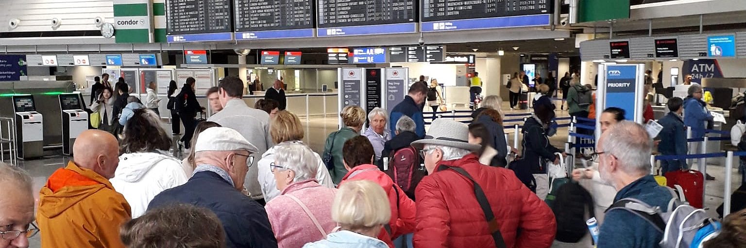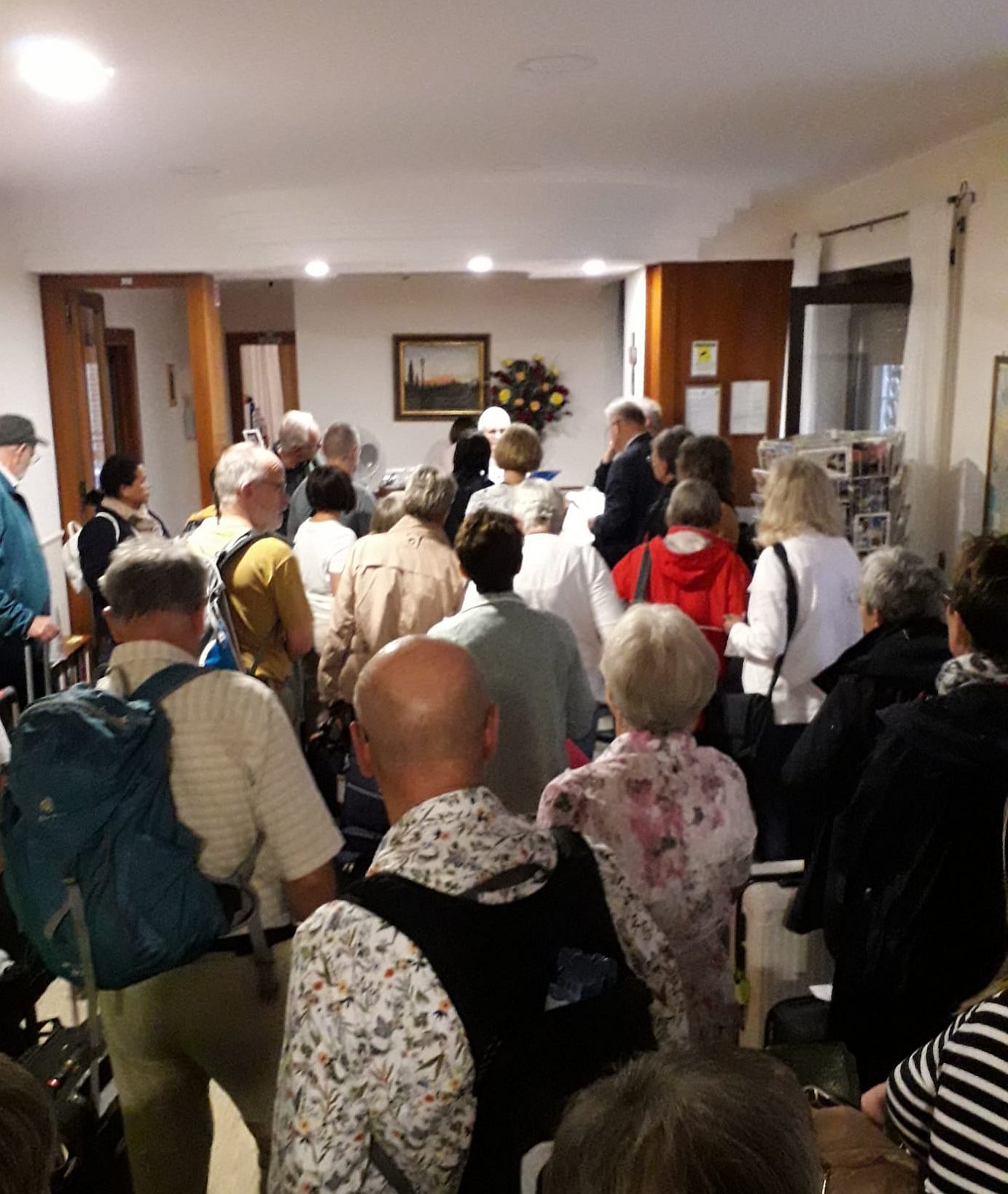 "Bewegt von Gottes Geist" im Heiligen Jahr als Pilger der Hoffnung in Rom. Die Mitreisenden haben auch die Hoffnung auf inspirierende Begegnungen und ein freundliches Miteinander während der Gemeindefahrt. Die Hoffnung wurde zumindest hier und da in Form von helfenden Händen beim Wiederauffinden von verlorenem Gepäck oder beschädigtem Koffer erfüllt.