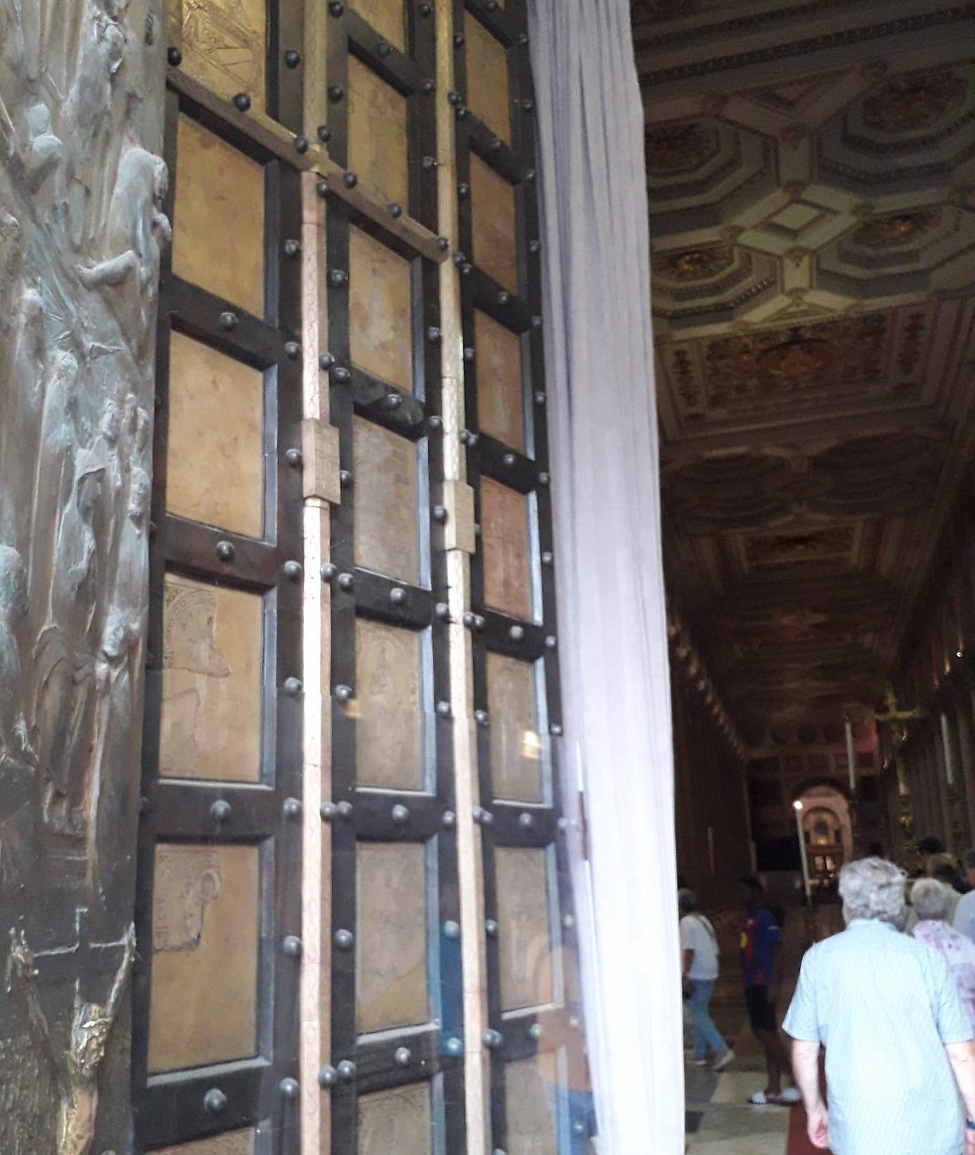In Stille und Dankbarkeit, die erste Basilika erreicht zu haben, wurde ein Gebet gesprochen und die Gruppe ging schweigend durch die Hl. Pforte.